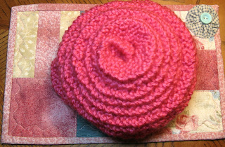 The rose one is the same pattern, although I rolled it up for this picture. Looks like a rose to me, although some ladies said they saw a muffin.